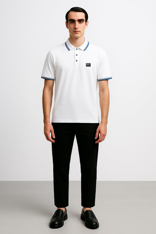 POLO WHITE-BLUE CON PLACA