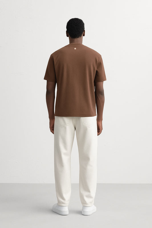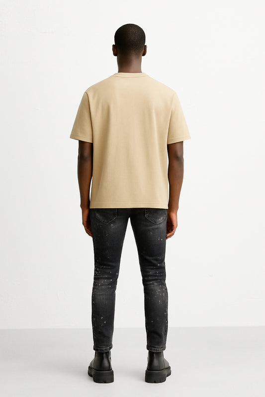 CAMISETA BEIGE CON PLACA CON LOGOTIPO