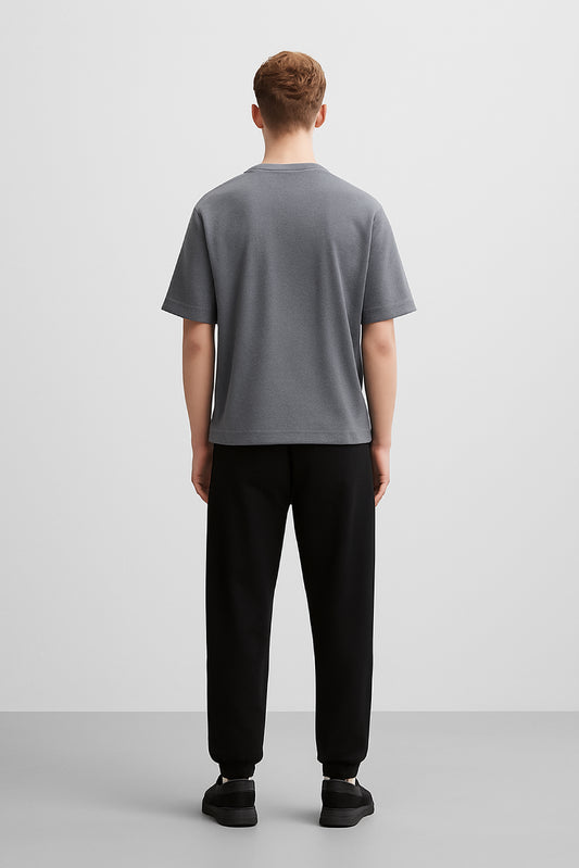 CAMISETA GRIS CON PLACA CON LOGOTIPO
